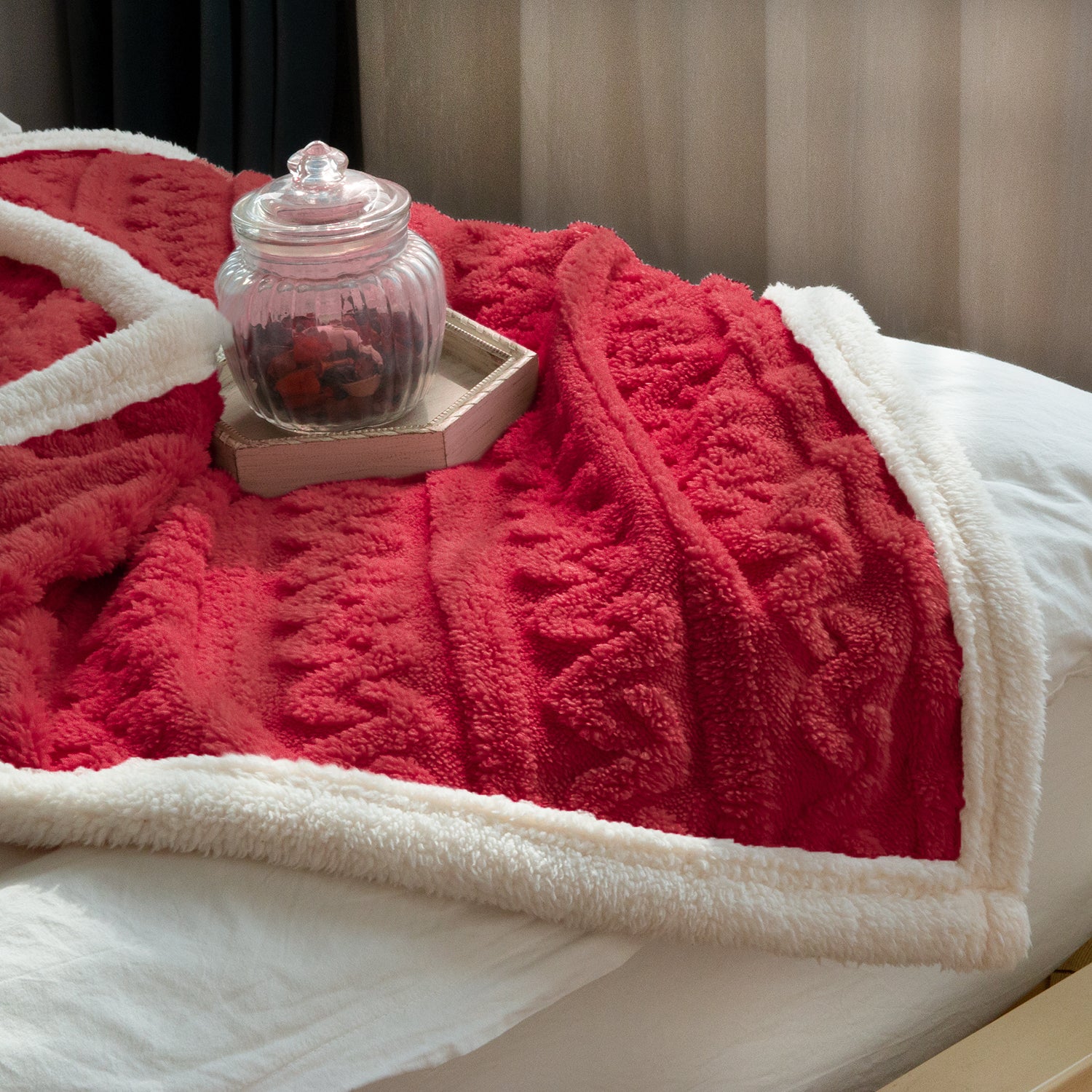 Sherpa baby blanket with 3D jacquard weave and fleece edge has a great balance in utility and decoration. You can use it as throw blankets for couch, bed, office while watching TV or when you are cuddled up by the fire or enjoying your time at home with your loved ones. And it is the perfert presents of lap blankets for your friends. Besides, A soft blanket with stylish pattern is a graceful decorative accent for our room, adding liveness to your life.