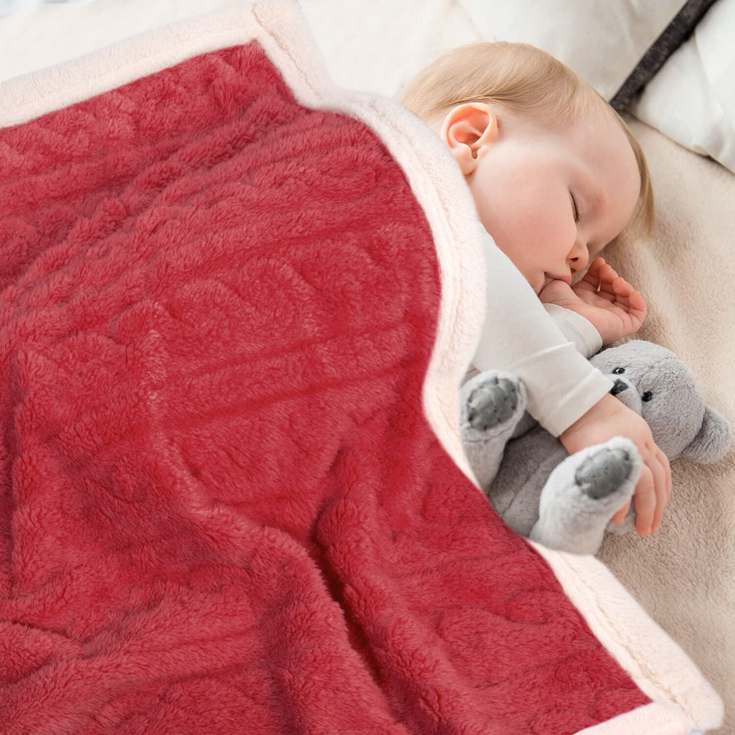 HOMRITAR Baby Blanket for Boys Girls Fluffy Toddler Blanket with Stylish 3D Jacquard Plush Newborn Blanket 30 x 40 Inches Red
